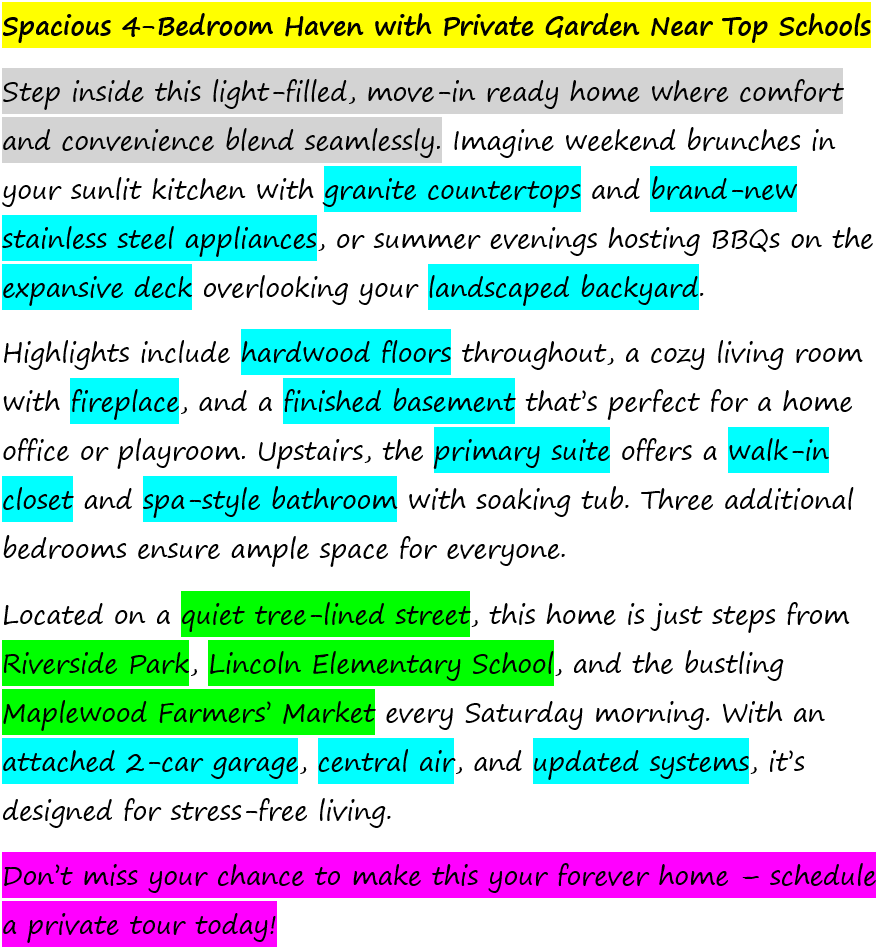 Research shows listings that attract more views in week one are up to 3× more likely to sell within 60 days — great copy is a key lever to earn those views.