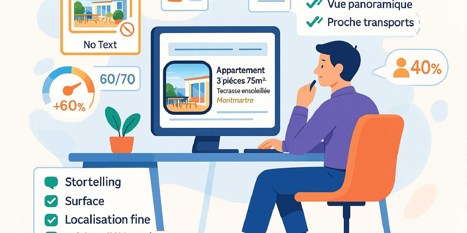 💬 Expert immobilier : « Sur Bien’ici et Logic-Immo, les annonces avec une première ligne précise et évocatrice génèrent 2 à 3 fois plus de clics que celles qui restent vagues. Le détail vend, le flou fait fuir. » – Agent indépendant, Lyon.