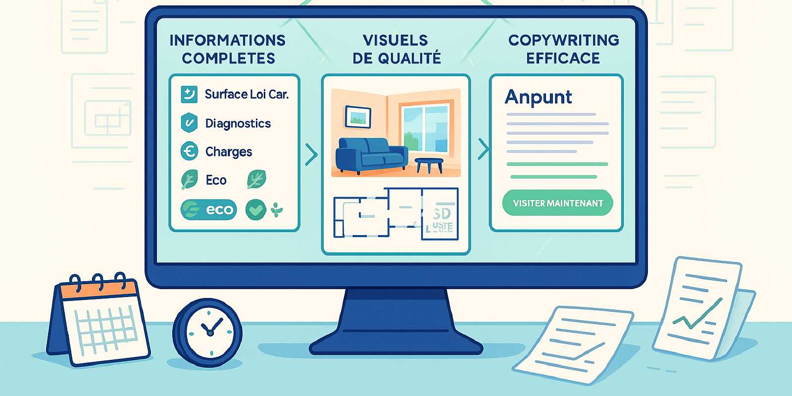 L’incertitude tue la conversion. Un acheteur qui ne trouve pas les informations qu’il cherche passe à l’annonce suivante. Une fiche descriptive appartement exhaustive répond à toutes les questions clés dès la première lecture et inspire confiance.