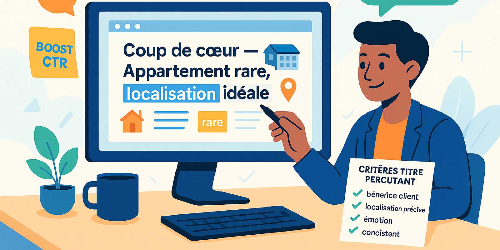 💡 Astuce pratique : Gardez une liste de vos meilleurs titres passés pour réutiliser les formules qui ont déjà fonctionné. Créez une bibliothèque d’exemples classés par type de bien.